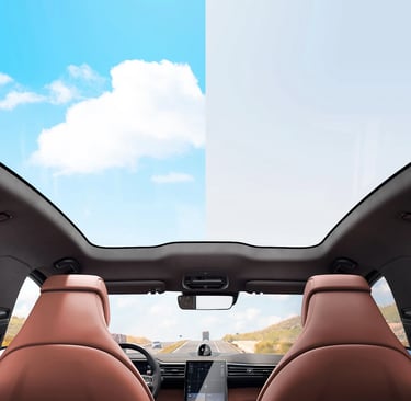 Améliorez votre confort en voiture grâce au smart film pour toit panoramique. En un simple passage de transparent à opaque, vous contrôlez instantanément la lumière qui entre, réduisez l’éblouissement et protégez votre intimité. Cette technologie apporte un confort premium, transforme l’ambiance intérieure et rend chaque trajet plus agréable, de jour comme de nuit.