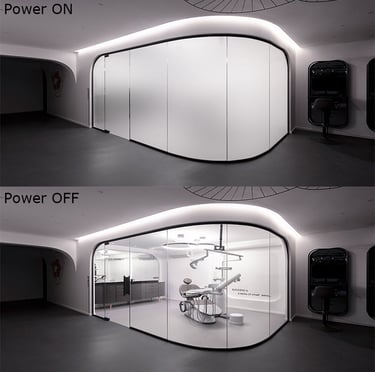 Transformez vos espaces médicaux avec le smart film PDLC et offrez un contrôle total sur la confidentialité et l’ambiance lumineuse. En mode transparent, vous conservez une atmosphère ouverte et apaisante ; en mode opaque, vous garantissez instantanément l’intimité nécessaire aux patients. Une solution moderne, élégante et idéale pour renforcer la sérénité, le professionnalisme et le confort global du cabinet.
